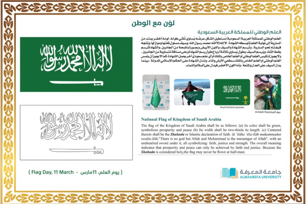 ضمن فعاليات احتفاء #جامعة_المعرفة بـ #يوم_العلم، نهديكم وسيلة تعليمية قابلة للتنزيل بدقة عالية؛ لتوظيفها كنشاط صفي تثقيفي في الصف الدراسي.