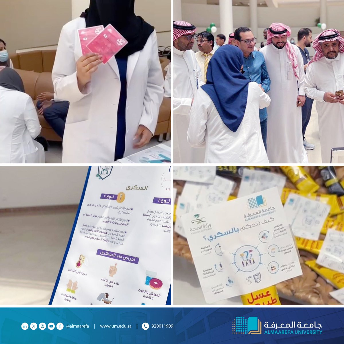 التشخيص المبكر … الوعي بعوامل الوقاية … المستجدات في العلاج ؛ جرعات تثقيفية قدمها نادي التمريض الطلابي في #جامعة_المعرفة ؛ تفعيلا لليوم العالمي للتوعية بالسكري.#اليوم_العالمي_للسكري #اليوم#الأسبوع_الخليجي_للسكري#اليوم_العالمي_لمرضى_السكري pic.twitter.com/ZJ6bLj305P — جامعة المعرفة (@AlMaarefa) November 14, 2023