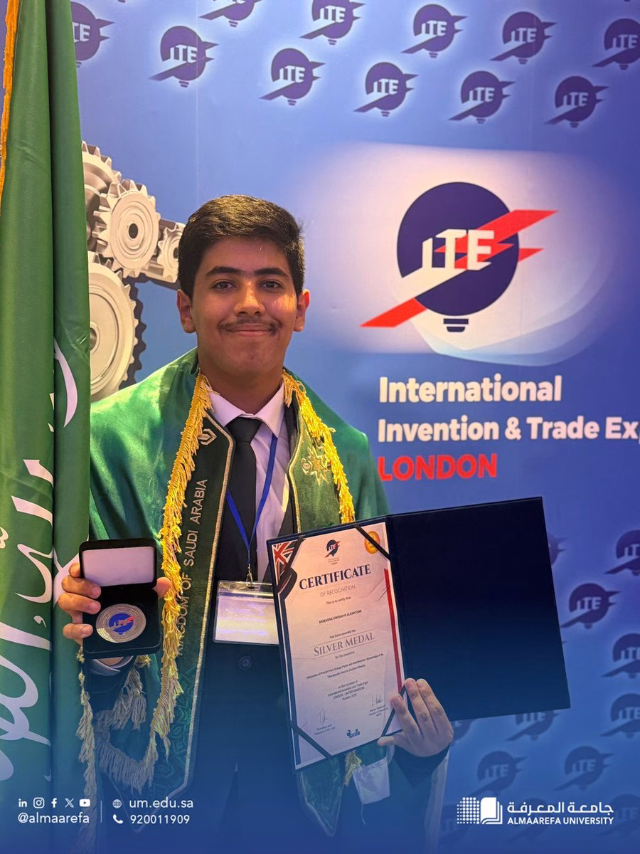 تُبارك #جامعة_المعرفة لطالب كلية الطب، مبارك عويضة راشد القحطاني، حصوله على الميدالية الفضية في المعرض الدولي للاختراعات والتجارة (ITE 2025) الذي أُقيم في لندن، عن ابتكاره المتميز الذي يجسد روح الإبداع والطموح لدى شباب الوطن.هذا الإنجاز يعكس اهتمام الجامعة برعاية …