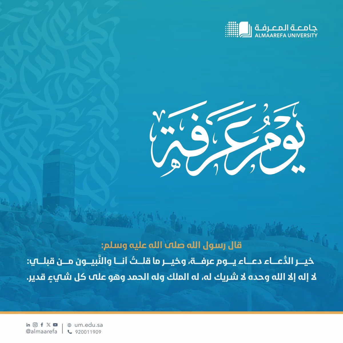 خيرُ الدُعاء ، دُعاء #يوم_عرفة . pic.twitter.com/vNJ7Wg3l27 — جامعة المعرفة (@AlMaarefa) June 5, 2025