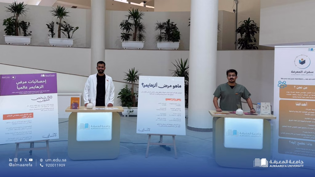 تزامناً مع الشهر العالمي للتوعية بالزهايمر، نظمت إدارة المسؤولية المجتمعية بـ #جامعة_المعرفة، ممثلة بفريق سفراء المعرفة، فعالية توعوية حول مرض الزهايمر وطرق الوقاية منه. #لاتنساني pic.twitter.com/lzKBifziJ6 — جامعة المعرفة (@AlMaarefa) October 2, 2025