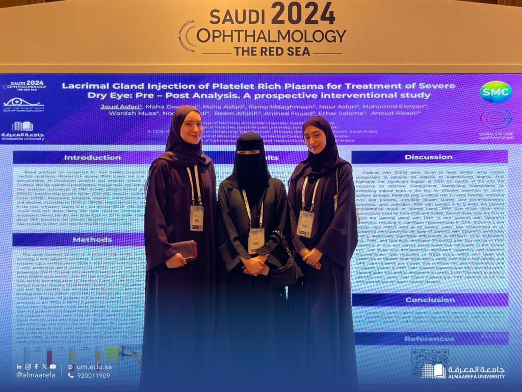 Our medical students Joud Asfari, Maha Dwaidari, and Maha Asfari proudly presented both a poster and an oral presentation at the Saudi Ophthalmology 2024 | The Red Sea Conference in Jeddah. Their dedication and insights are a testament to advancing ophthalmology research. https://t.co/MEQgoPI00T