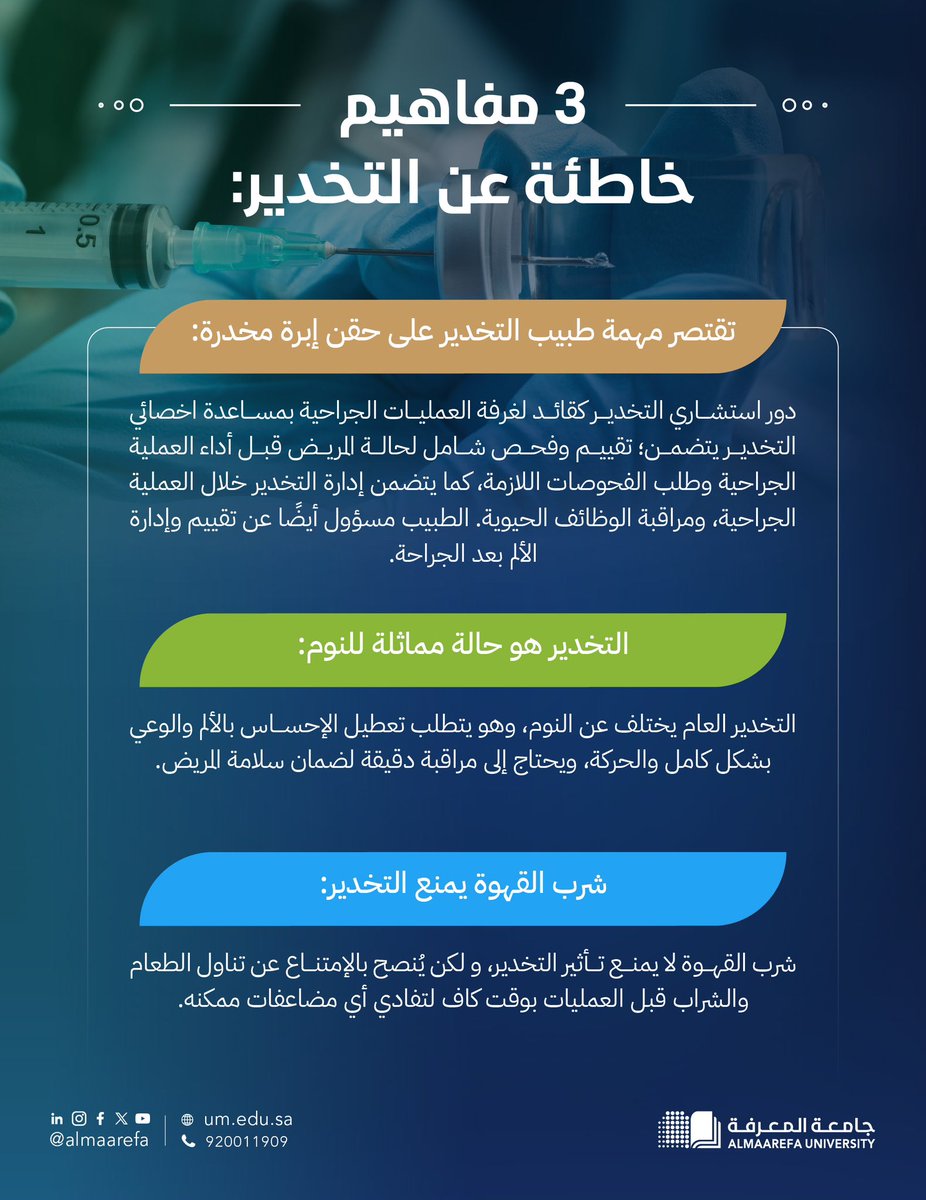 On #World Anesthesia Day, Al Maarefa University renews its commitment to raise awareness about the specialty of Anesthesia Technology, which represents a vital part of the health system. We are proud to graduate an elite group of specialists capable of providing integrated health care according to the highest international standards. The specialty of Anesthesia Technology at the University of …