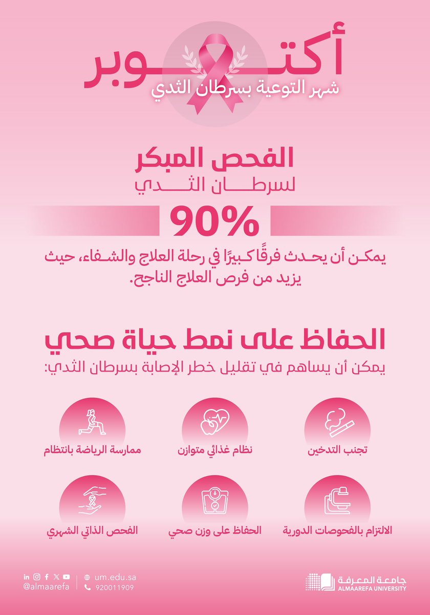 Every early screening for #breast_cancer is a valuable opportunity to live a new life, through which we can ensure a bright future and a prosperous present. The University of Knowledge calls on everyone to make #early_screening an integral part of our health culture, striving towards a vibrant and sustainable society. The …