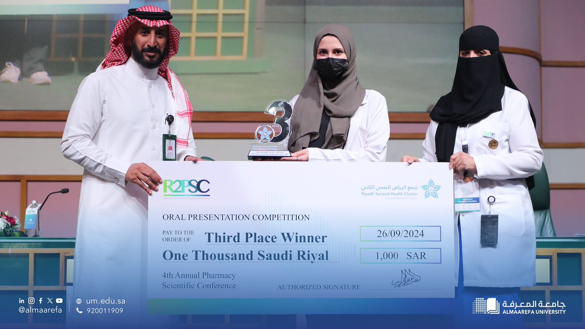 Meanwhile, the students Nada Abu Shaheen and Nahida Al-Samak secured third place. [pic.twitter.com/JtXA7Rdiou — Almaarefa University (@AlMaarefa)]