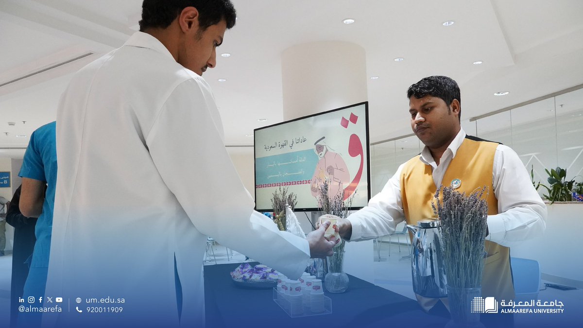 Almaarefa University celebrated International Coffee Day by offering Saudi coffee to its staff and students. This initiative aims to highlight the value and quality of Saudi coffee and raise awareness about the importance of daily coffee consumption. The celebration acknowledges the role of coffee in Saudi cultural heritage and emphasizes the importance of preserving customs and traditions that reflect the national identity.
