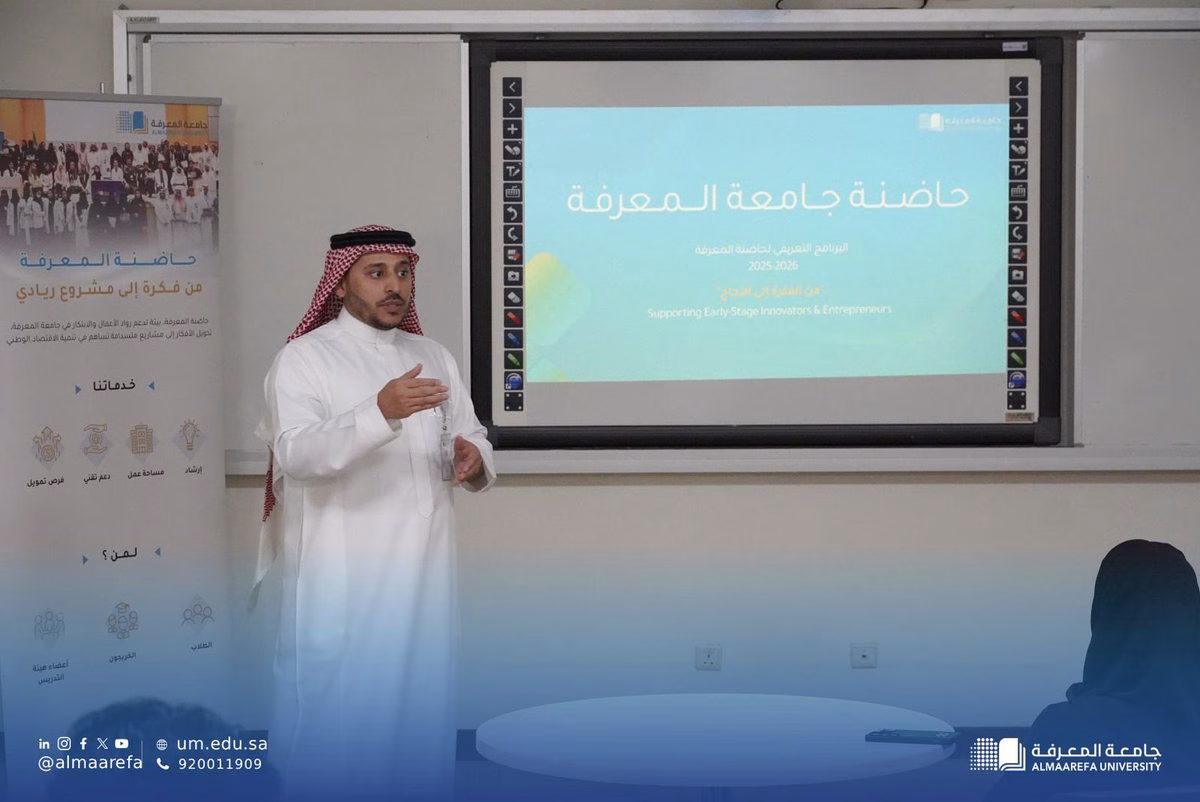 في إطار تعزيز جهودها في دعم الابتكار وريادة الأعمال، أطلقت  #جامعة_المعرفة برنامج حاضنة المعرفة، وأقيمت ورشة تعريفية للتعريف بأهدافه وفرصه في تمكين المبدعين من تحويل أفكارهم إلى مشاريع ريادية واعدة. — AlMaarefa (@AlMaarefa) Sep 14, 2025