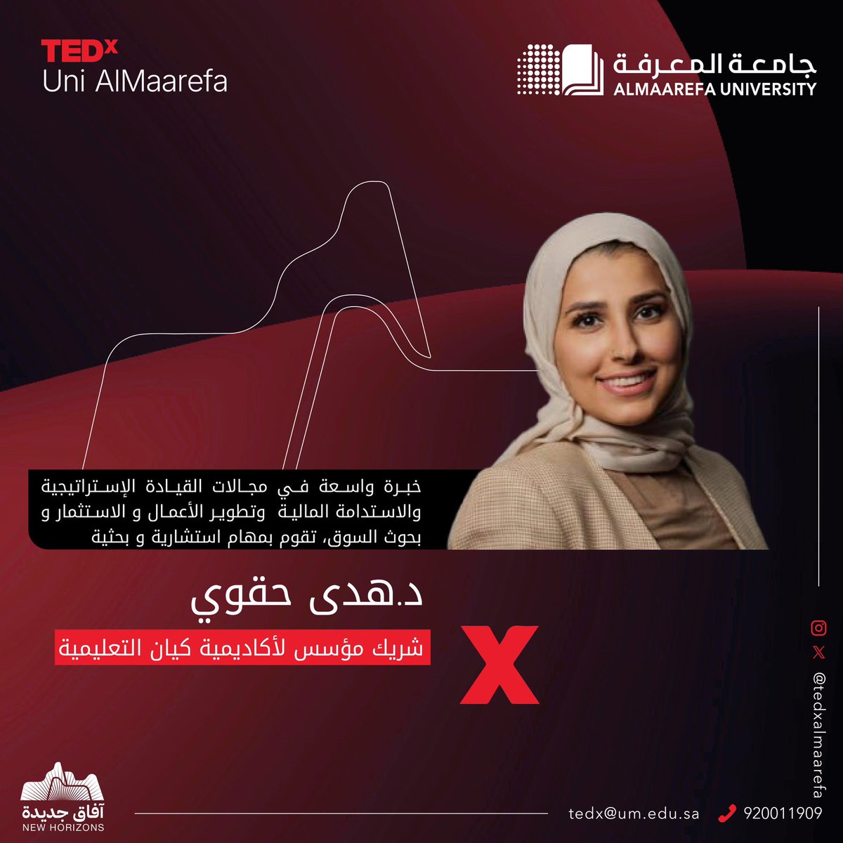 مُطوِّرة أعمال، ومدربة معتمدة، ومتمرسة في إستراتيجيات الإعداد المبكر لسوق العمل.لديها وصفتها الُملهمة في التوازن بين العمل والحياة. د.هدى حقوي @Hudahagawe، ستكون معكم في موعد مُلْهِم للحديث عن مهارات بناء الهُوِيَّة المهنية. فكونوا في الموعد. ( السبت 23 نوفمبر، جامعة …