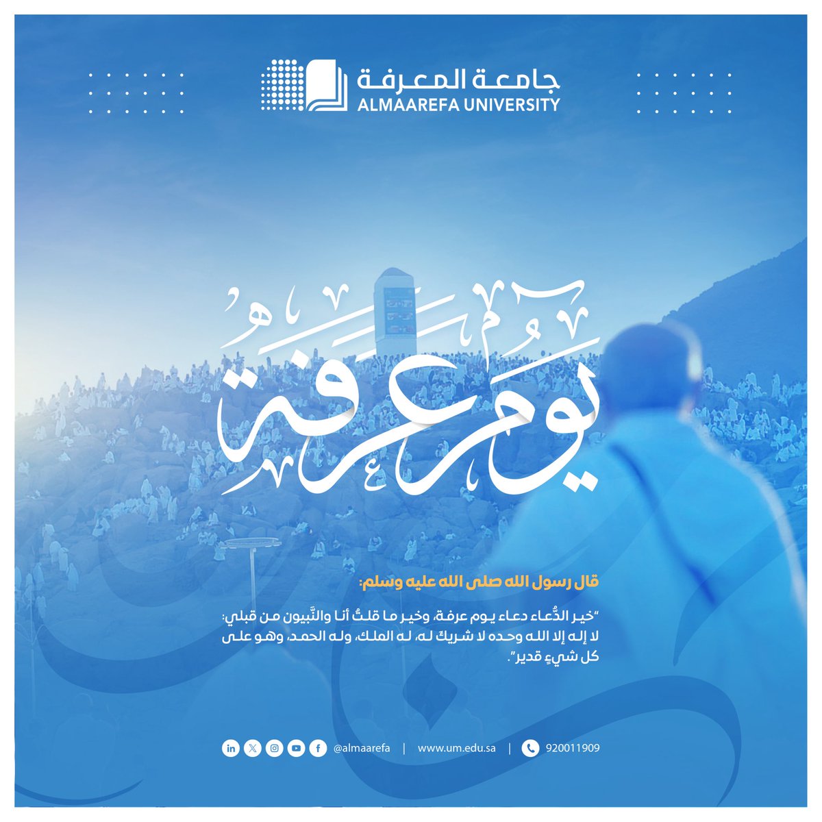 ” خير الدعاء دعاء يوم عرفة…”@AlMaarefa pic.twitter.com/81AYcr1FSy — جامعة المعرفة (@AlMaarefa) June 15, 2024