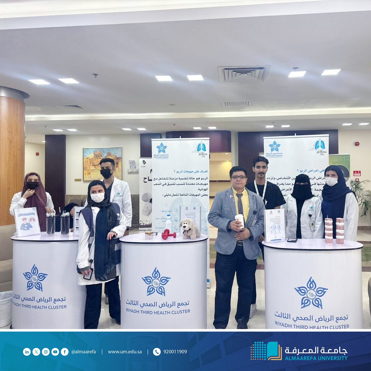 ضمن برنامج الاحتفاء بـ #اليوم_العالمي_للربو، مسؤولية #جامعة_المعرفة الاجتماعية ممثلة بقسم الرعاية التنفسية يشاركون تجمع الرياض الصحي الثالث في تنفيذ حملة توعوية مجتمعية؛ للتعريف بالربو، وكيفية الوقاية من مضاعفاته.@AlMaarefa pic.twitter.com/ixvjxHkKfg — جامعة المعرفة (@AlMaarefa) May 7, 2024