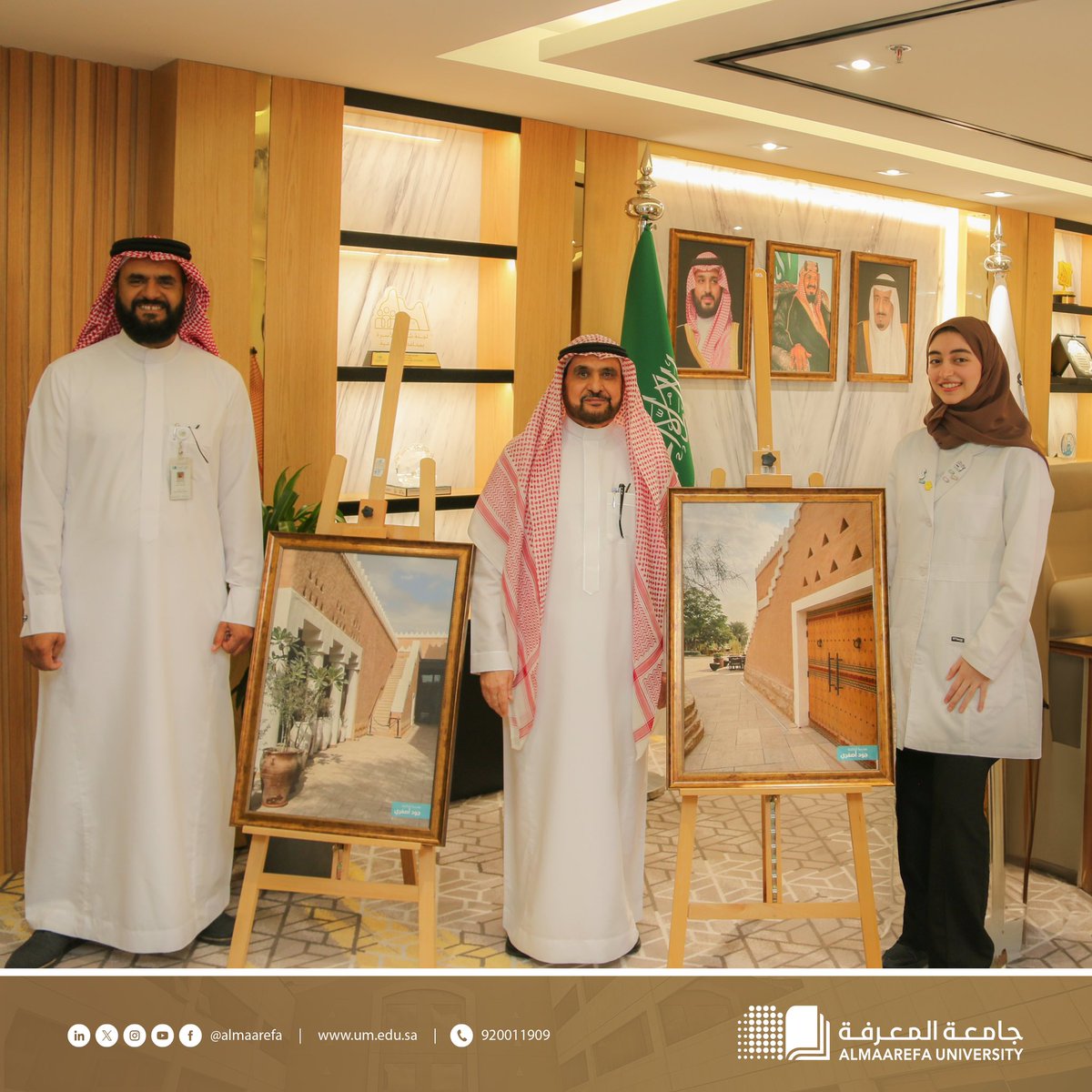 احتفاء بـ #اليوم_العالمي_للتراث، معالي رئيس الجامعة يُكرِّم عدسة طالبة الطب جود أصفري لفوزها بجائزة مسابقة: “الدرعية التاريخية بعيون طلابية”.#هيئة_التراث#تراث_وسياحة@AlMaarefa pic.twitter.com/dmVoxRuxKk — جامعة المعرفة (@AlMaarefa) April 18, 2024
