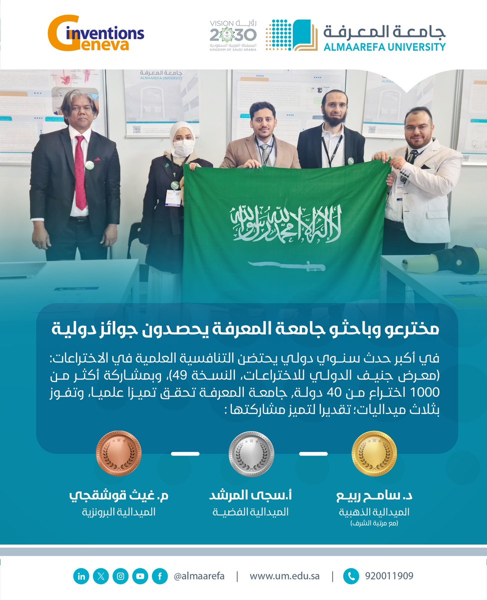 في إنجاز دولي جديد … #جامعة_المعرفة تحصد ثلاث ميداليات في معرض #جنيف الدولي للاختراعات، النسخة 49. #وزارة_التعليم #الاختراعات_السعودية@AlMaarefa pic.twitter.com/tFe4rFV7nM — جامعة المعرفة (@AlMaarefa) April 20, 2024