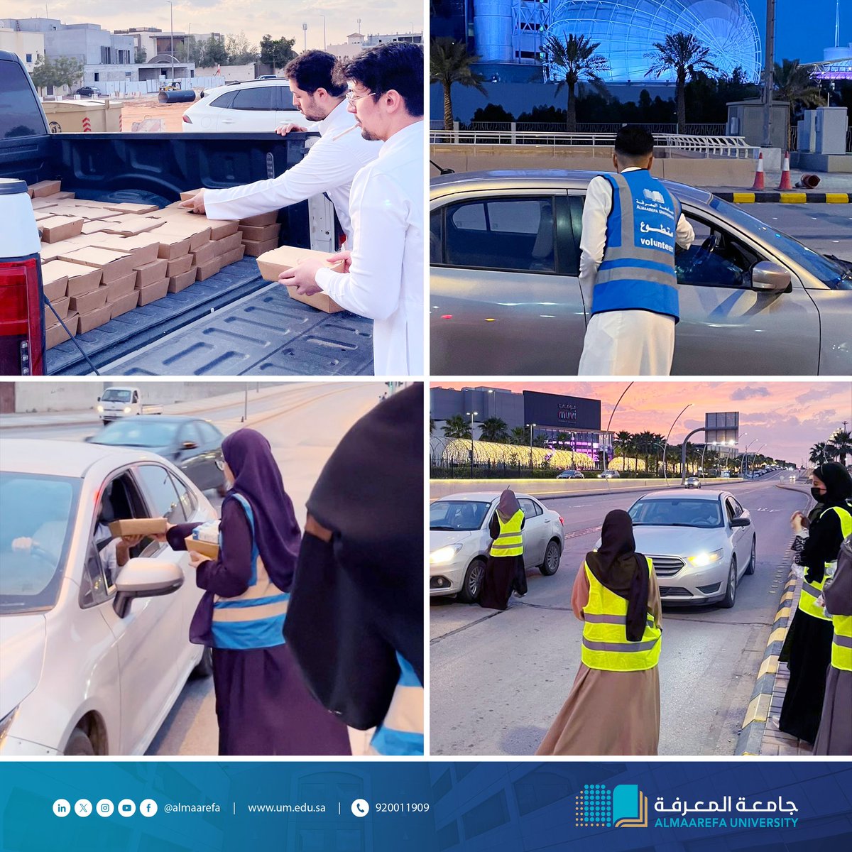 ضمن برنامج الحملة التطوعية الرمضانية، وتجسيدا لقِيَم ومسؤولية #جامعة_المعرفة المجتمعية، فريق نادي وتين الطلابي يباشر الصائمين في طرقاتهم بوجبات إفطار مكتملة. شكرا لفخر المعرفة … طلبتنا المتطوعين. pic.twitter.com/4s4ql5GX4l — جامعة المعرفة (@AlMaarefa) April 2, 2024