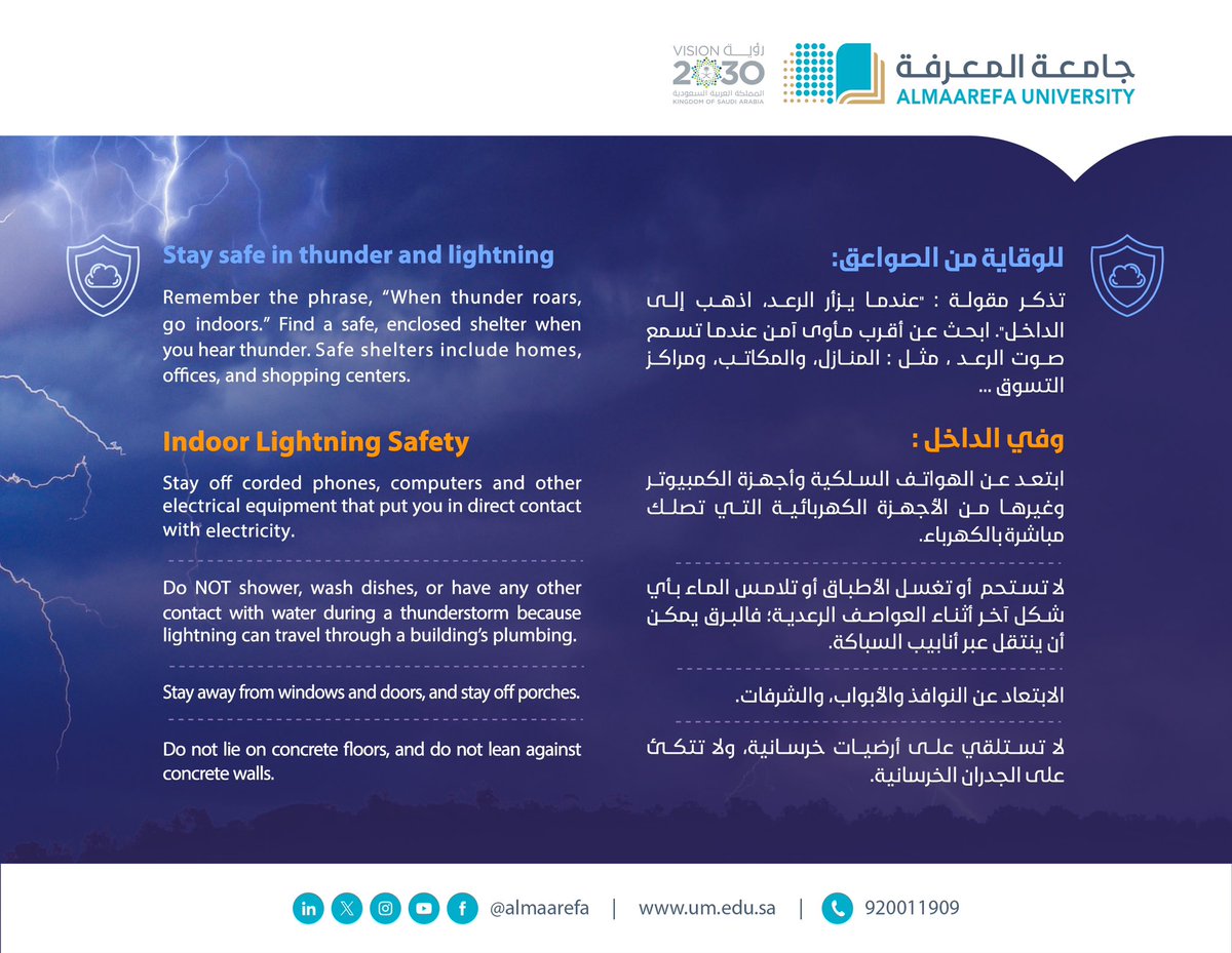 مع استمرار التقلبات الجوية على معظم مناطق المملكة والتوقعات الأرصادية، قسم الهندسة الصناعية في #جامعة_المعرفة ينبَّه : pic.twitter.com/jynB7hymEF — جامعة المعرفة (@AlMaarefa) March 18, 2024