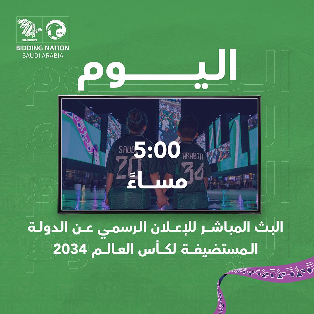 سمو #ولي_العهد يرفع التهنئة لـ #خادم_الحرمين_الشريفين بمناسبة فوز المملكة رسميًا باستضافة بطولة #كأس_العالم_FIFA™️ 2034.#السعودية34 | #أهلاً_بالعالم#معًا_ننمو#واس https://t.co/EiDsx6ouvs pic.twitter.com/oHcwcsqqRx — واس الأخبار الملكية (@spagov) December 11, 2024